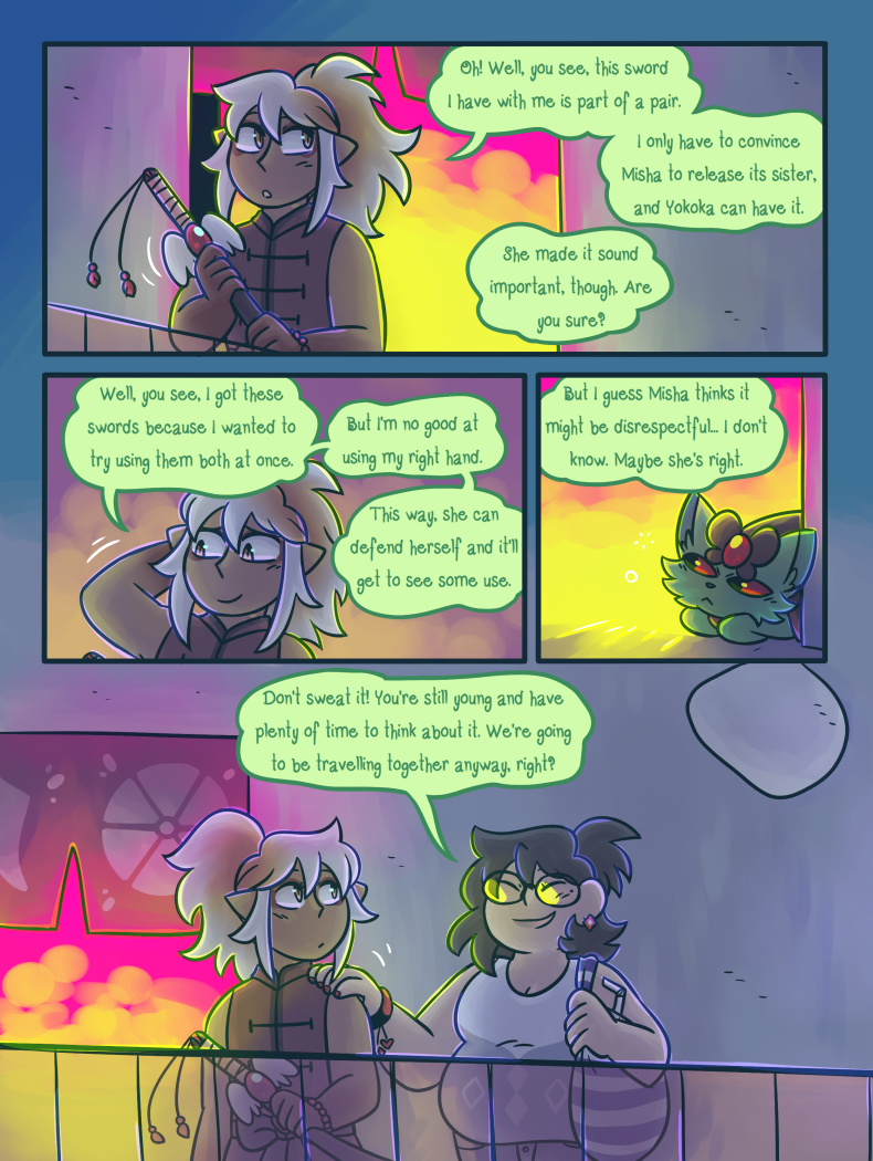 Chapter 11 Page 82 by ClefdeSoll on March 22, 2021 at 2:00 pm Chapter: Chapter 11Characters: Azha, Grace, Misha Comment