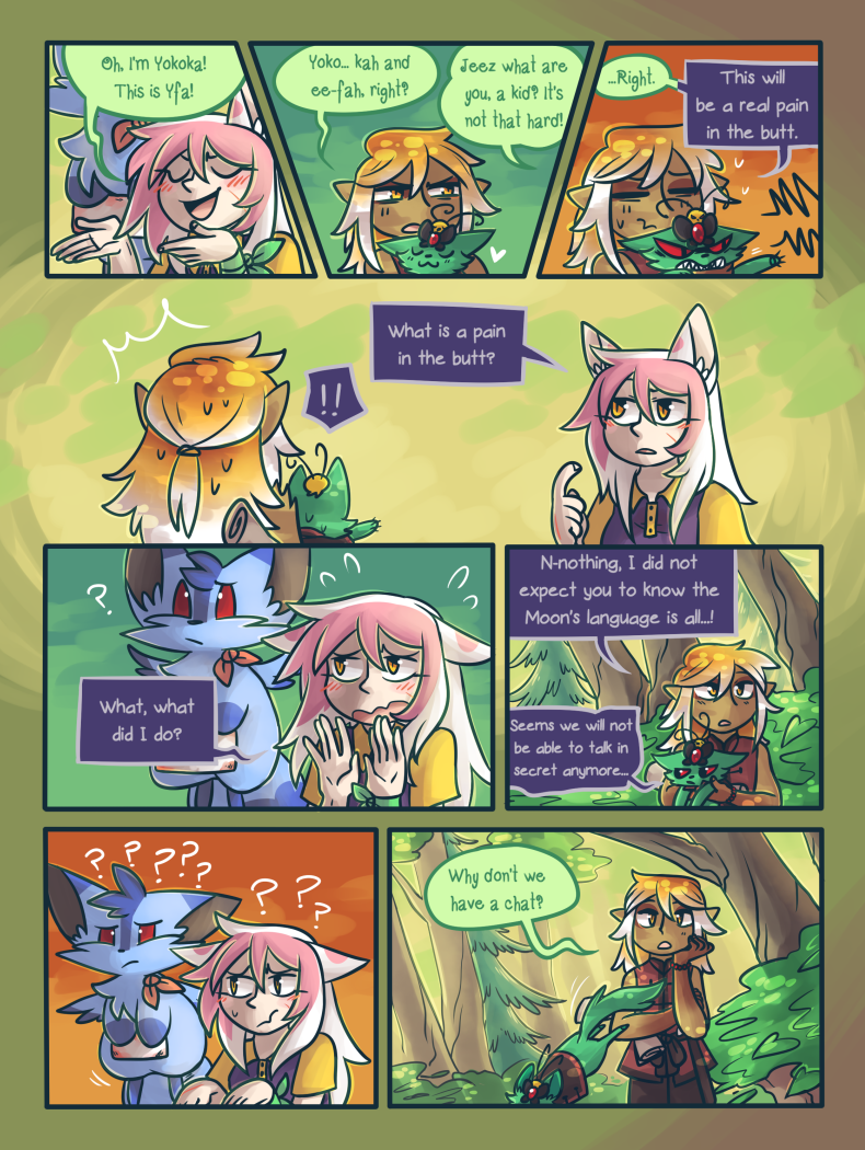 Oh hey look, we finally know what different speech bubbles mean! They’re different languages. And in case any of you are colour blind, I want you all to know I’m trying to make them easy to tell apart even without[…]↓ Read the rest of this entry…