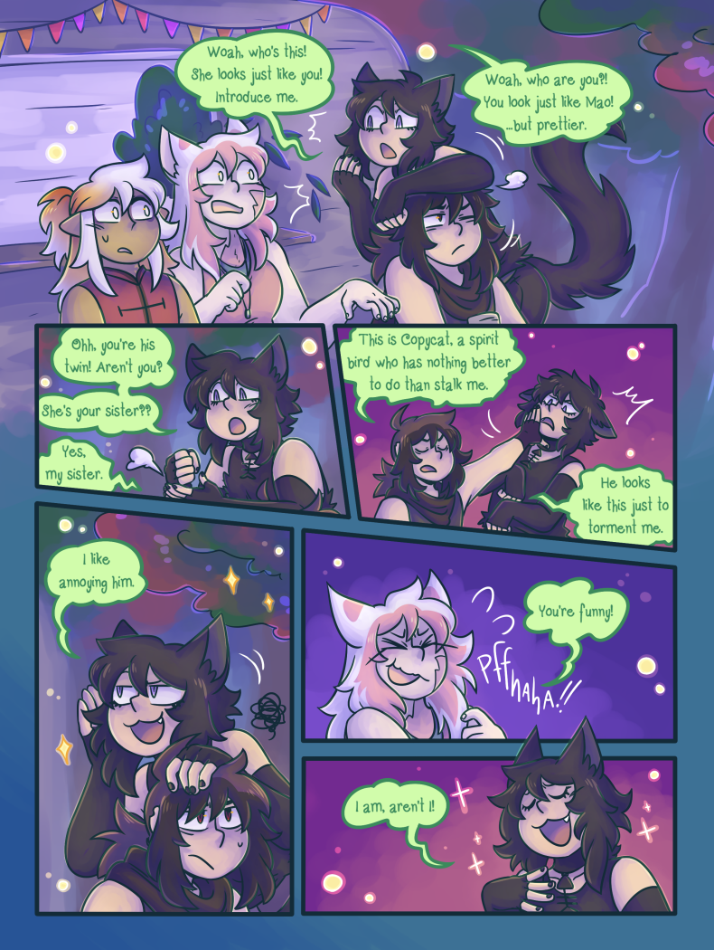 Chapter 14 Page 72 by ClefdeSoll on December 18, 2023 at 2:00 pm Chapter: Chapter 14Characters: Azha, Copycat, Mao, YokokaLocation: Forest Clan, Golden Mountains Comment